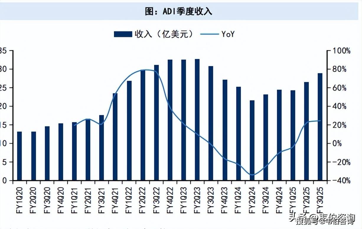 长期AI带来增量:模拟芯片作为基础器件,在电子产品中广泛使用,AI数据中心以及自动驾驶、人形机器人等AI应用均为其带来广泛增量。比如机器人,根据ADI的法说会,机器人技术从固定臂机器人向自主、移动乃至人形机器人发展,将使ADI提供的价值量从数百美元增加到数千美元。